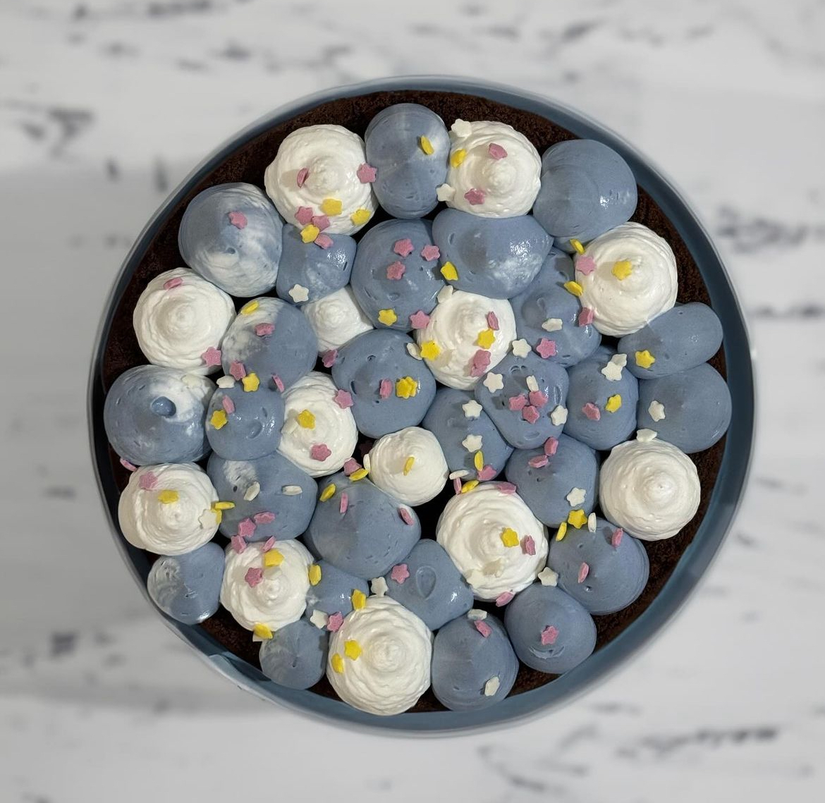 Proseguite al decoro montando e colorando la panna in 3 sfumature di azzurro per creare la gradazione di colore.