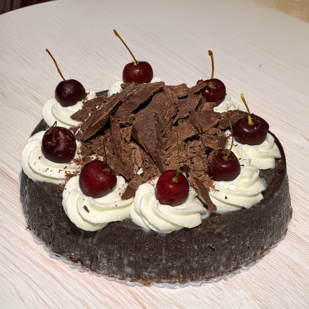 La Cheesecake Foresta Nera è una deliziosa fusione tra la tradizionale cheesecake e la celebre torta Foresta Nera. Questa variante della cheesecake combina la cremosità e la consistenza tipica della cheesecake con i sapori intensi e ricchi della torta Foresta Nera, caratterizzata dal cioccolato, le ciliegie e la panna montata. La base croccante è spesso realizzata con biscotti al cioccolato, mentre la farcitura è un cremoso ripieno di formaggio arricchito con cioccolato fondente e ciliegie, il tutto guarnito con panna montata e scaglie di cioccolato. Questa torta è un dessert irresistibile per chi ama i sapori intensi e il connubio tra dolcezza e acidità.