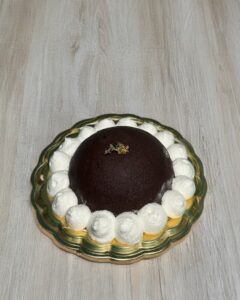 Prepara la glassa: sciogli il cioccolato fondente a bagnomaria (o nel microonde), aggiungi il burro di cacao o l’olio e mescola fino a ottenere una glassa liscia.