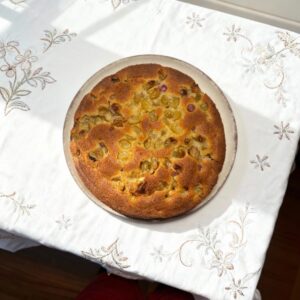 Inforna a 180°C per circa 35-40 minuti, finché la torta sarà dorata e l’uva avrà rilasciato il suo succo caramellandosi. Lasciala raffreddare prima di sformarla.