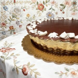 La cheesecake al cocco con copertura al cioccolato รจ un dolce elegante e perfetto da servire come dessert a fine pasto. La freschezza del cocco incontra la cremositร del ripieno a base di formaggio, completato dalla nota croccante e avvolgente del cioccolato fondente. Un dolce semplice da preparare, ma con un risultato scenografico e irresistibile. Ideale nelle giornate calde, ma perfetto anche come coccola golosa tutto lโanno.