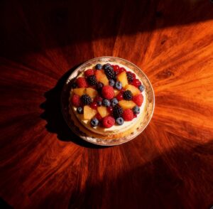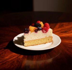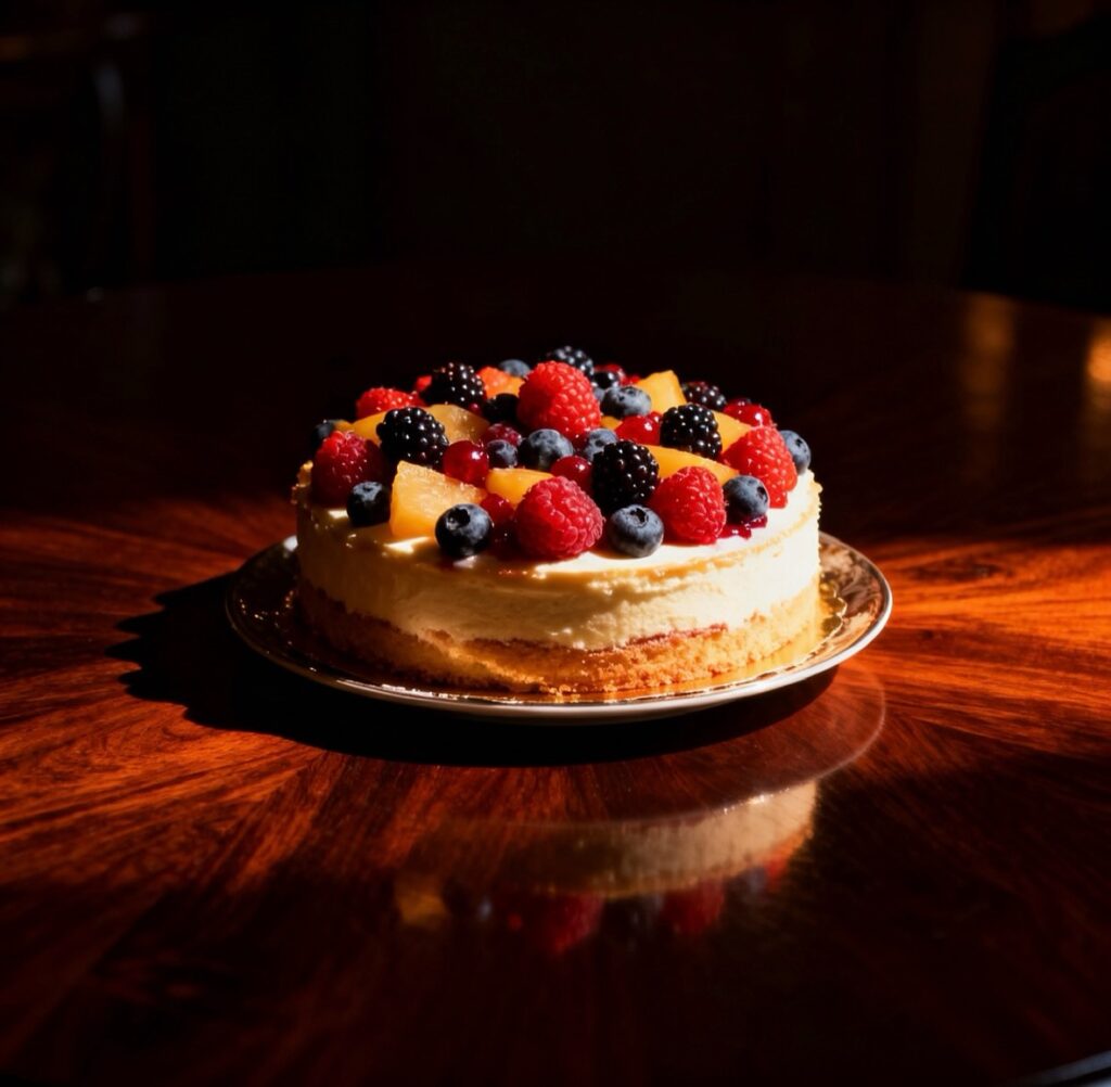 Si montano le uova con lo zucchero fino a ottenere un composto chiaro e spumoso, poi si aggiungono burro fuso e farina setacciata con il lievito. Si versa l’impasto in uno stampo imburrato e infarinato e si cuoce a 170°C fino a doratura. Dopo aver lasciato raffreddare la base, si prepara il frosting montando la panna con lo zucchero a velo e incorporando delicatamente il mascarpone fino a ottenere una crema vellutata. Si stende la crema sulla base e si completa con frutti di bosco e fettine di pesca. Il risultato è un dolce leggero, fresco e dal gusto raffinato.
