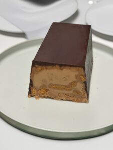 Si versa la crema all’interno del guscio di cioccolato livellandola con una spatola e si chiude con un ultimo strato sottile di cioccolato fondente fuso.