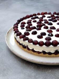 La cheesecake all’uva è un dolce fresco, elegante e sorprendente. L’aroma delicato dell’uva incontra la cremosità del formaggio e la croccantezza della base biscotto, creando un dessert equilibrato e irresistibile. Ideale per chi ama i dolci scenografici ma semplici da preparare, senza bisogno di accendere il forno. Perfetta per l’autunno, quando l’uva è al massimo della sua dolcezza, questa cheesecake conquista al primo sguardo con il suo gioco di strati e chicchi lucidi che decorano la superficie. Preparata in uno stampo da 22 cm, è un dessert adatto a ogni occasione.