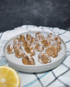 I pizzicotti al limone e cioccolato bianco sono dolcetti freschi, veloci e profumatissimi, perfetti quando hai voglia di un biscotto morbido che sappia di limone ma senza accendere il forno. In questa versione l’impasto nasce da biscotti tritati che si trasformano in una base compatta grazie al succo di limone e al cioccolato bianco fuso, con lo zucchero che addolcisce e la scorza che profuma tutto in modo irresistibile. Sono bocconcini semplici e genuini, modellati a mano, dal sapore fresco e dalla consistenza morbida e leggermente umida. Lo zucchero a velo dona la finitura che chiude il morso con delicatezza. Ideali da offrire, da regalare o da tenere in frigo per una coccola golosa sempre pronta.