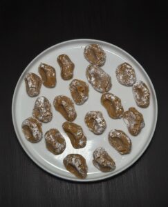 Con le mani leggermente umide si formano piccoli pezzi irregolari, modellandoli a pizzicotto così da ottenere la forma tipica di questi dolcetti. Ogni biscotto viene passato nello zucchero a velo per ricoprirlo completamente. I pizzicotti vengono sistemati su un piatto e lasciati riposare qualche minuto così che si compattano e prendono la loro forma definitiva. Rimangono morbidi, profumati e freschi, perfetti da servire come dolce veloce o fine pasto senza cottura.