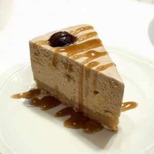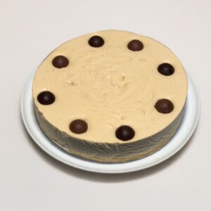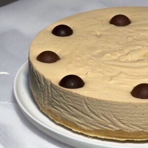 Una cheesecake alla crema di nocciola dal gusto avvolgente e raffinato, pensata per chi ama i dolci cremosi e intensi. La base croccante di biscotti al burro sostiene una farcia morbida e vellutata, dove il formaggio spalmabile incontra la dolcezza della crema di nocciole e le note delicate della vaniglia. La consistenza è fresca ma strutturata, grazie alla panna montata che rende il ripieno leggero e armonioso al palato. La decorazione con praline e sfere di cioccolato aggiunge un tocco goloso e scenografico, rendendo questa cheesecake perfetta sia come dessert di fine pasto che come torta da condividere nelle occasioni speciali. Un dolce elegante nella sua semplicità, capace di conquistare al primo assaggio.