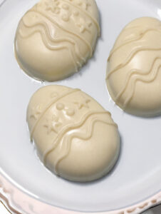 Questi ovetti racchiudono un cuore cremoso di mascarpone e pan di Spagna, il tutto avvolto da un guscio morbido al cioccolato bianco che dona un effetto vellutato e raffinato.